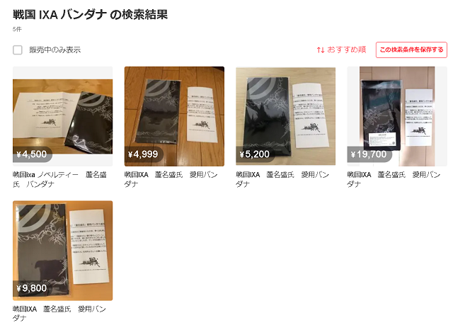 どうせそういう人が居るだろうなと思いメルカリで 蘆名バンダナをチェックしてみると…