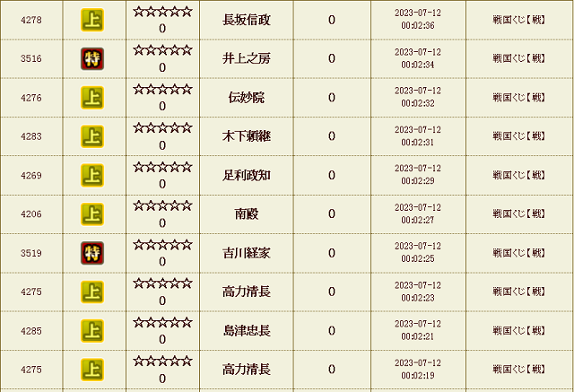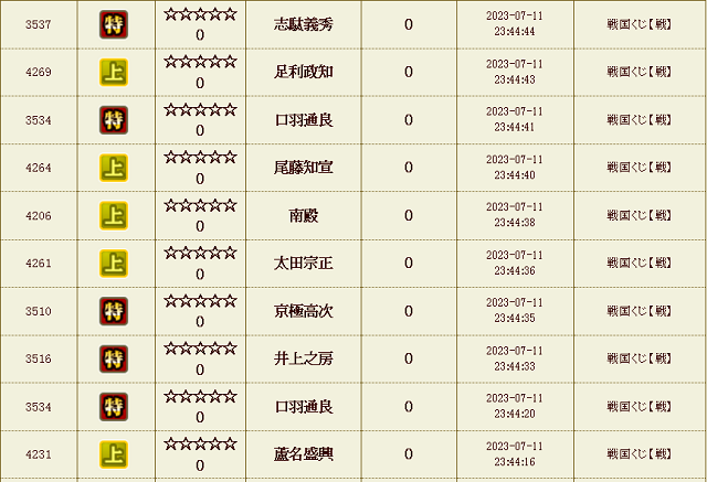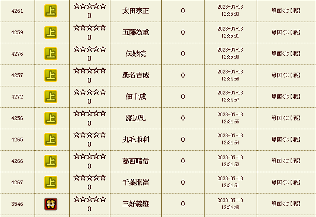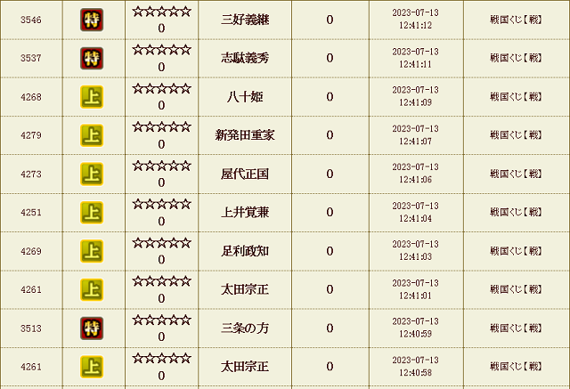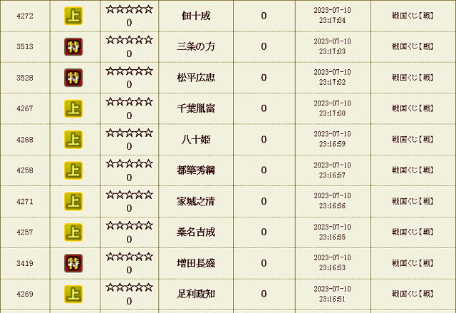 戦くじ結果のほうは、例の幻期間を過ぎてからは実に安定ノーブル稼働してます。