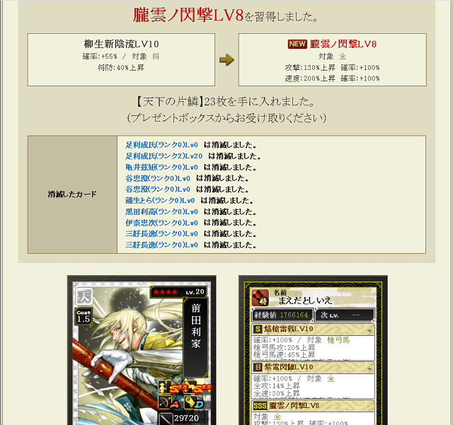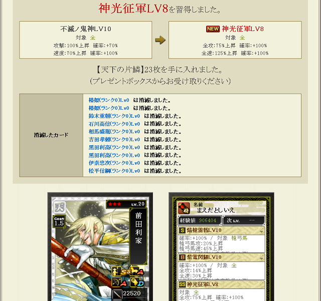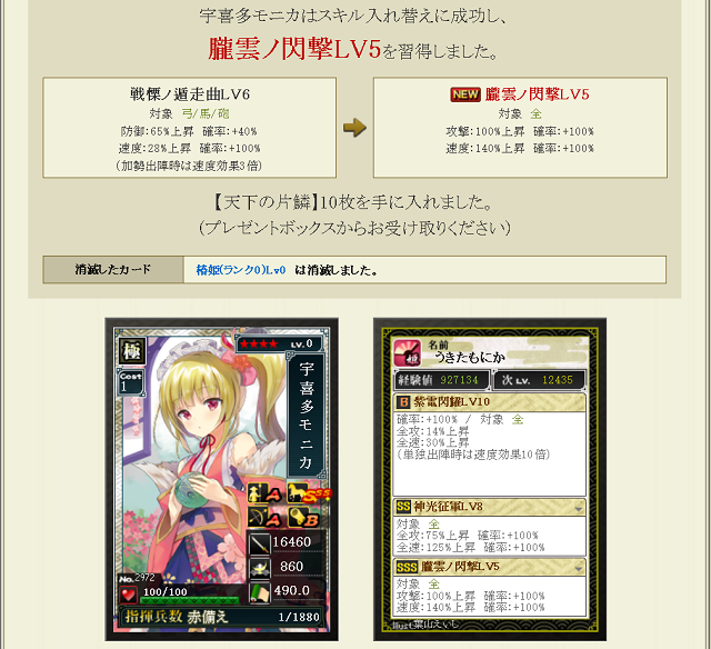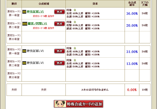 あとは特の武田から不滅ノ鬼神をノーマル合成連打でつければ素材できあがり オヌヌメだ。