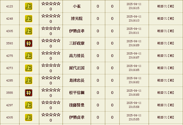 戦くじ 試行回数合計 : 24,490 回