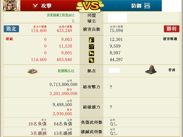 お相手の盟主城にギッチリ防御武将が入っていた事と、