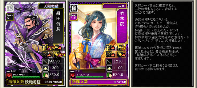 そこで、新しい信長に4合スキルを付与ししてみようかと。