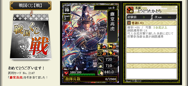 当時、老眼話をしたイクサーさんが持っていた武将が、この藤堂。