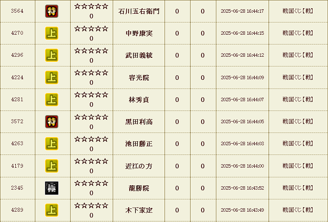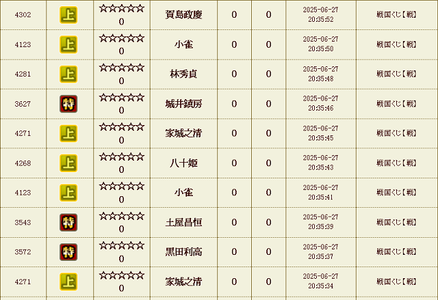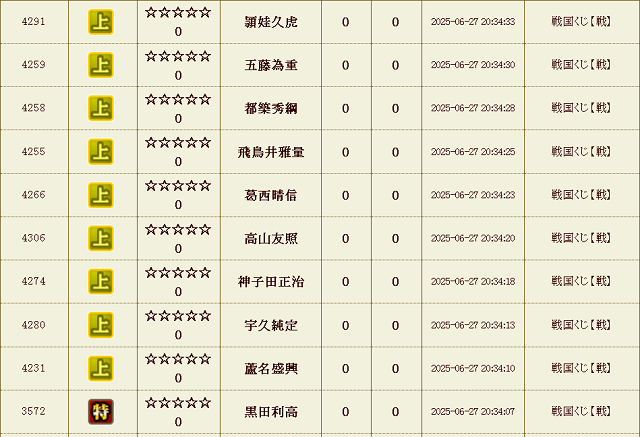 傑武将とか引いてる人は 100%強化が約束されていて羨ましいですね。