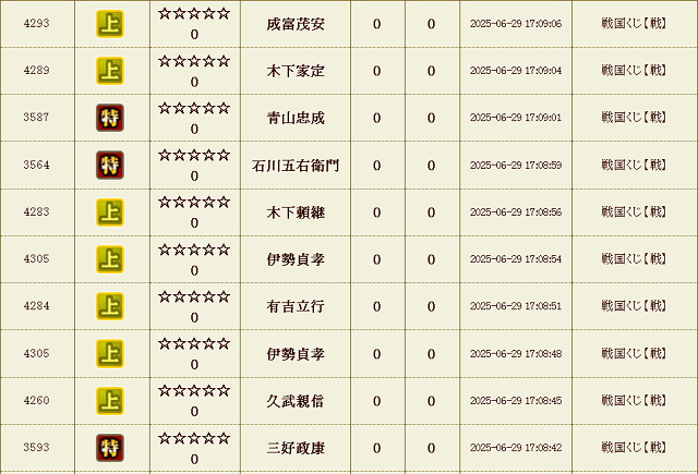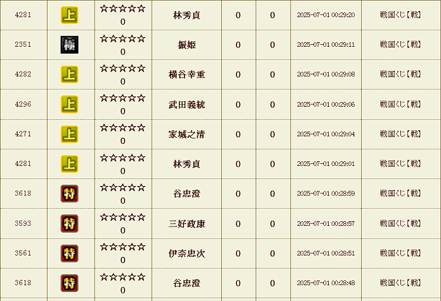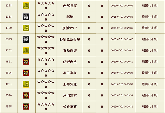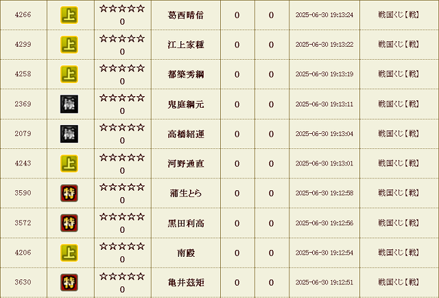 極武将だけで言うと、シンプルに50枚分多く引けてる事になりますかね。