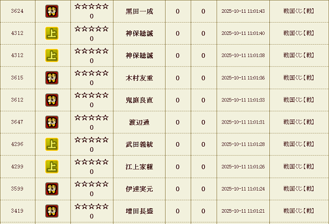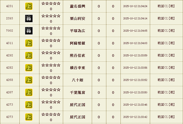 戦くじ 試行回数合計 : 25,030 回