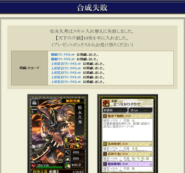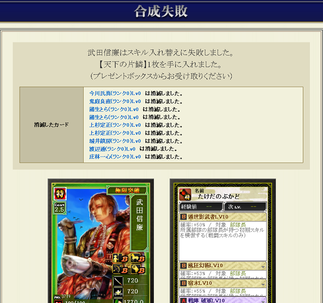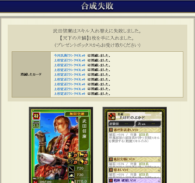 カード枠的にはいいけど、50とはいえ金も使ってて極マネ素材も持ってかれると気分悪いわ。