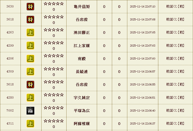 今来てる この 「戦国くじ【位階】」をプレイしよう